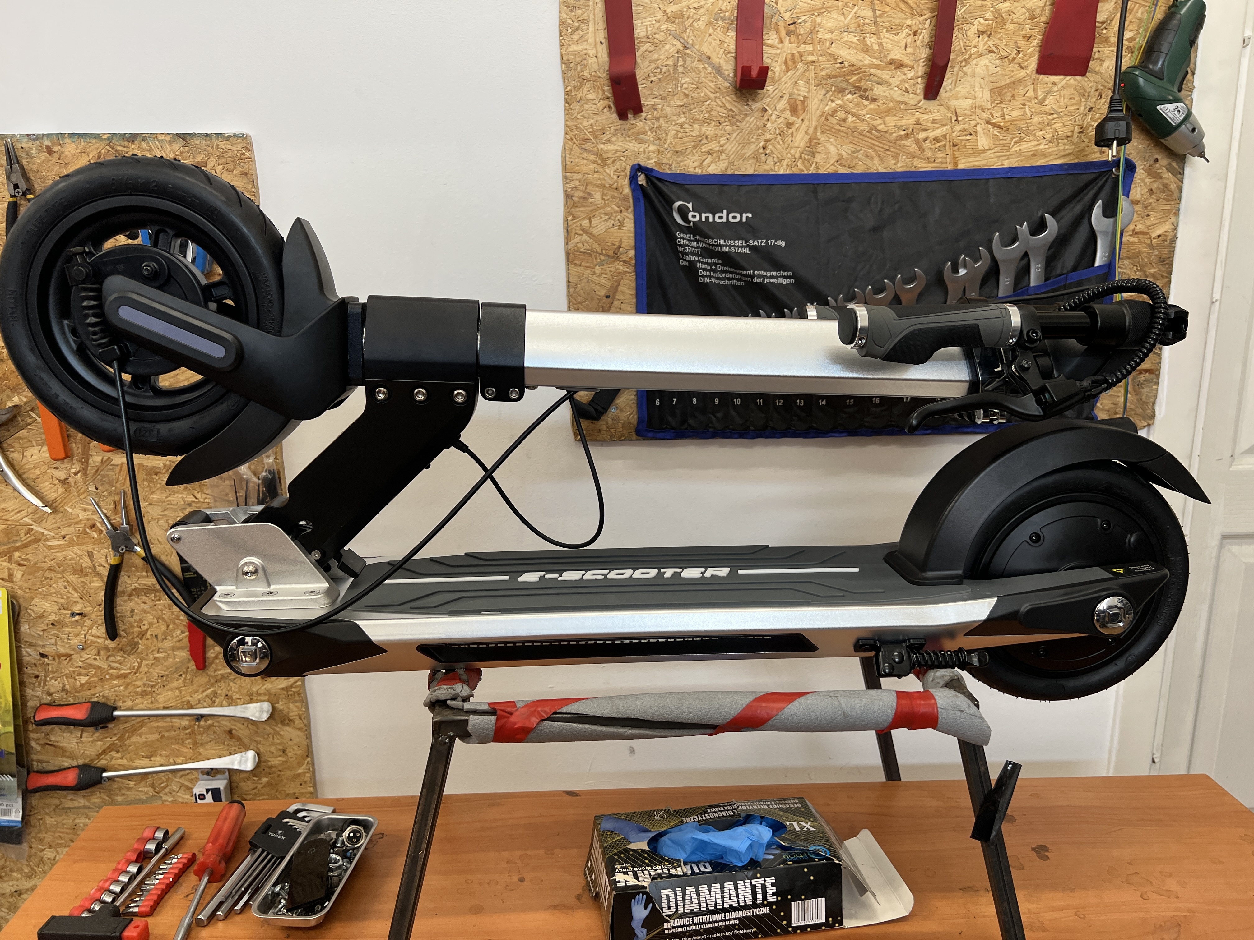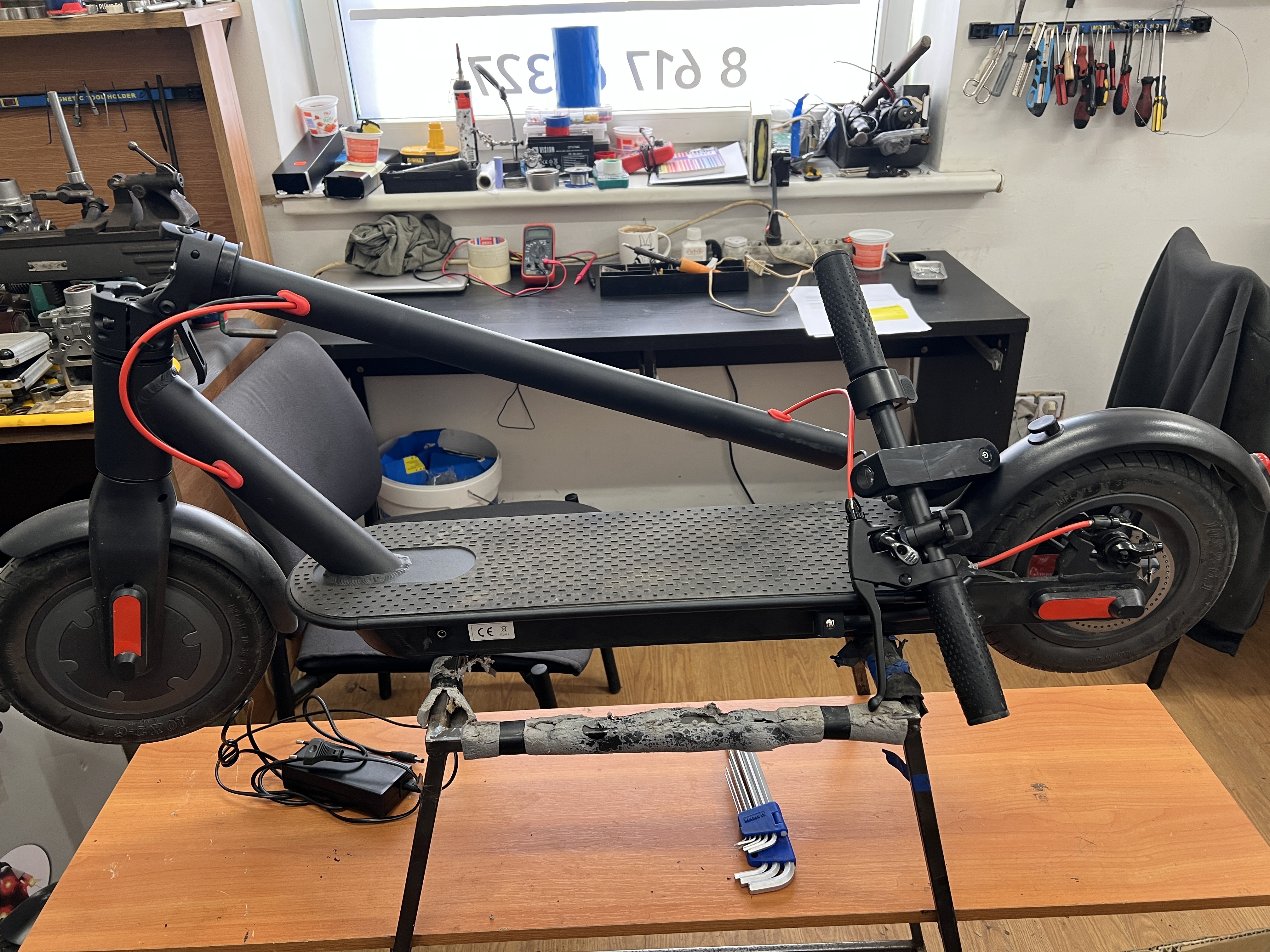 Ši galerija – tai realūs XScooters serviso darbų pavyzdžiai: nuo paspirtukų baterijų remonto ir elementų keitimo iki elektrinių paspirtukų važiuoklės, stabdžių bei e-dviračių serviso darbų. Nuotraukose matysite diagnostiką, matavimus, ardymą, elektronikos mazgus ir sutvarkytas detales.